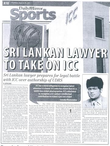 'Daily Mirror' Article on Sri Lankan's claims to authorship of UDRS - August 30, 2011